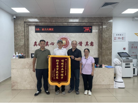 一副鲜艳的锦旗上写道:“情暖老兵伸援手股E融,助学圆梦感党恩”。这是退役老兵刘叔叔赠予广州市退役军人事务局、荔湾区退役军人事务局以及华林街道退役军人服务站的诚挚谢意。